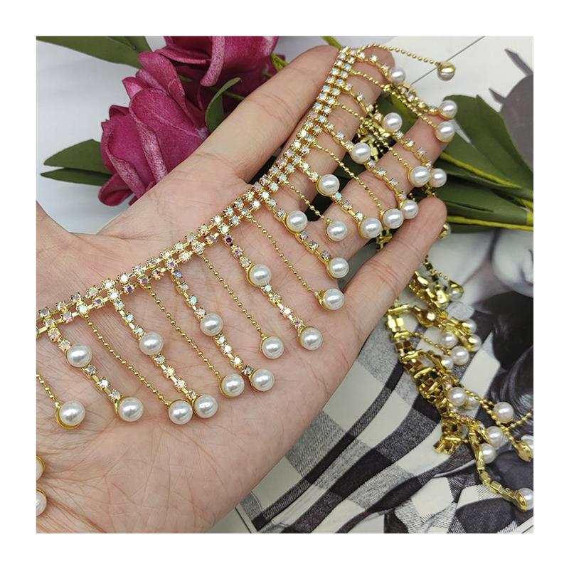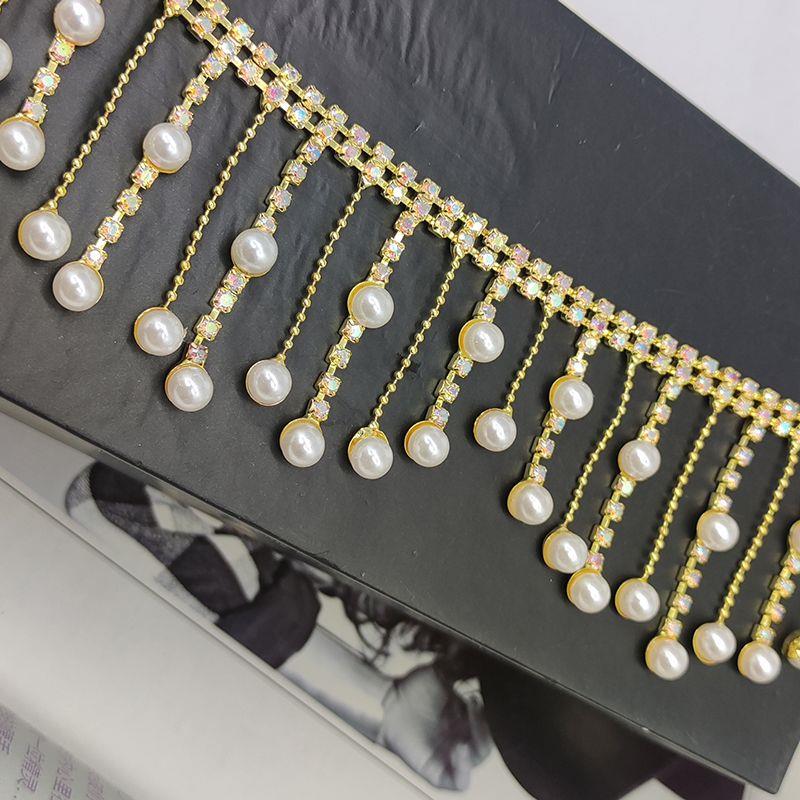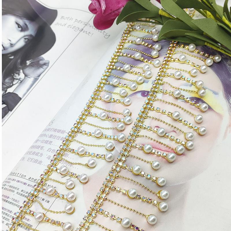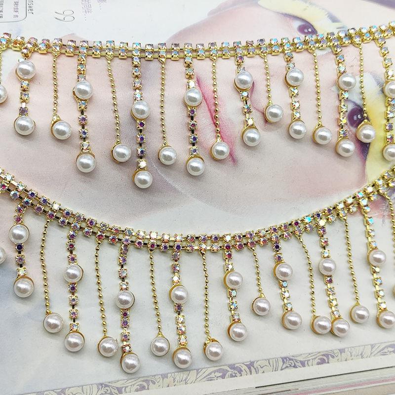 帽边diy婚纱 辅料鞋 AAA钻珍珠波浪流苏钻链花边水钻秀禾服袖 口服装