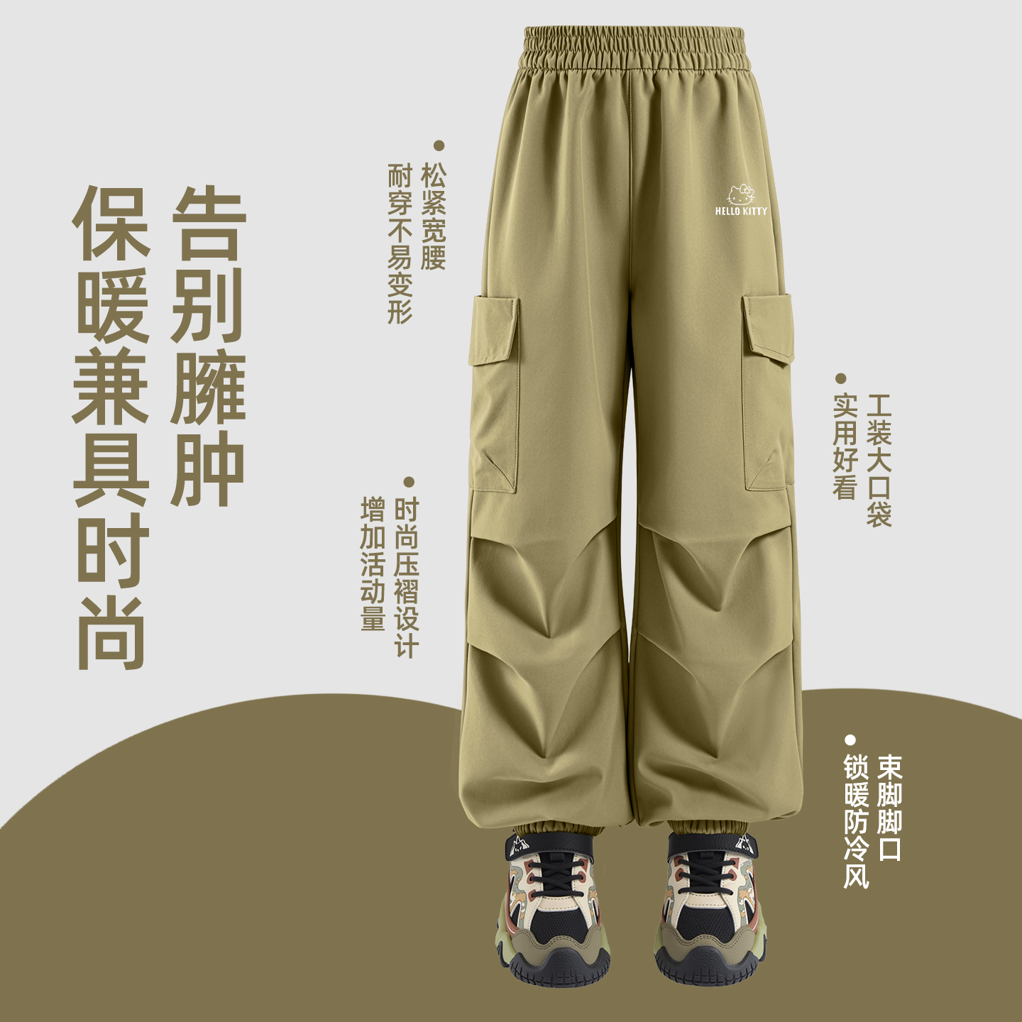 Kitty女童加绒裤 防水保暖紫色束脚裤 子儿童冲锋裤 裤 潮 工装 Hello