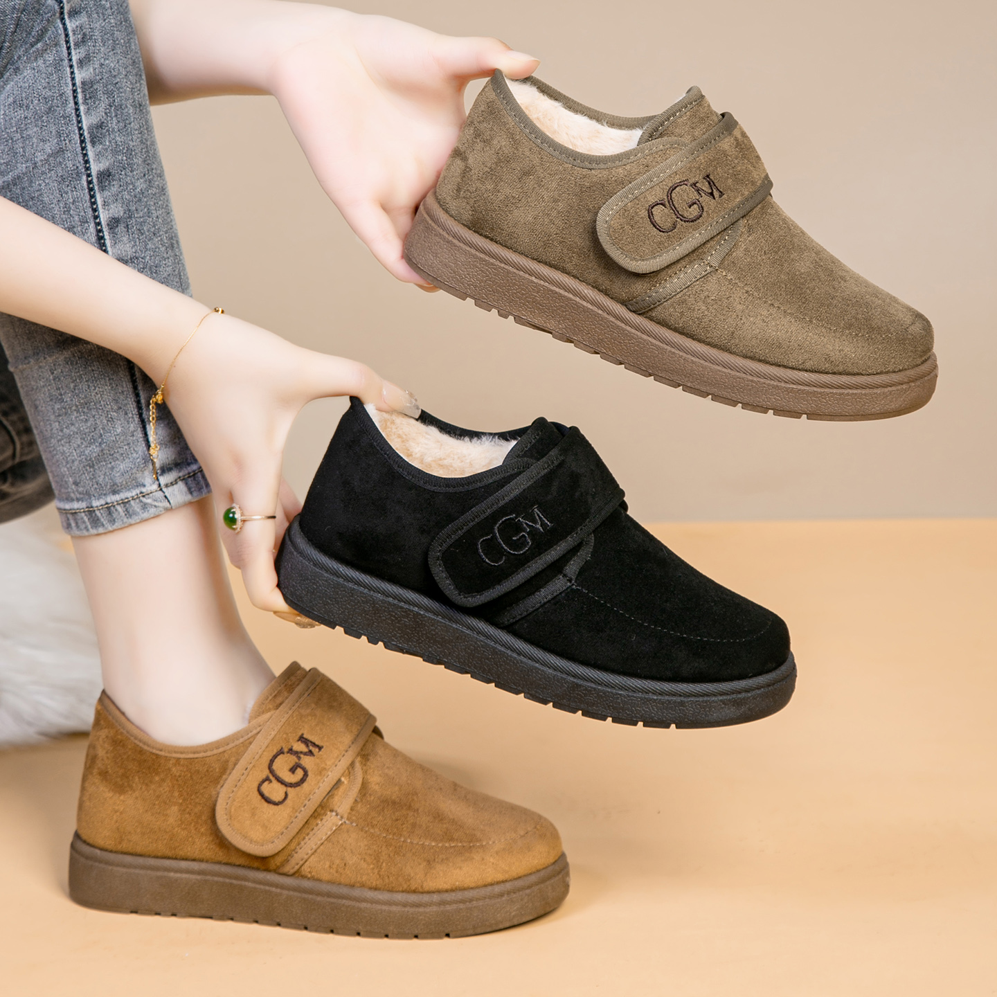 加绒加厚保暖一脚蹬软底防滑妈妈鞋 新款 雪地靴 女2024冬季 棉鞋
