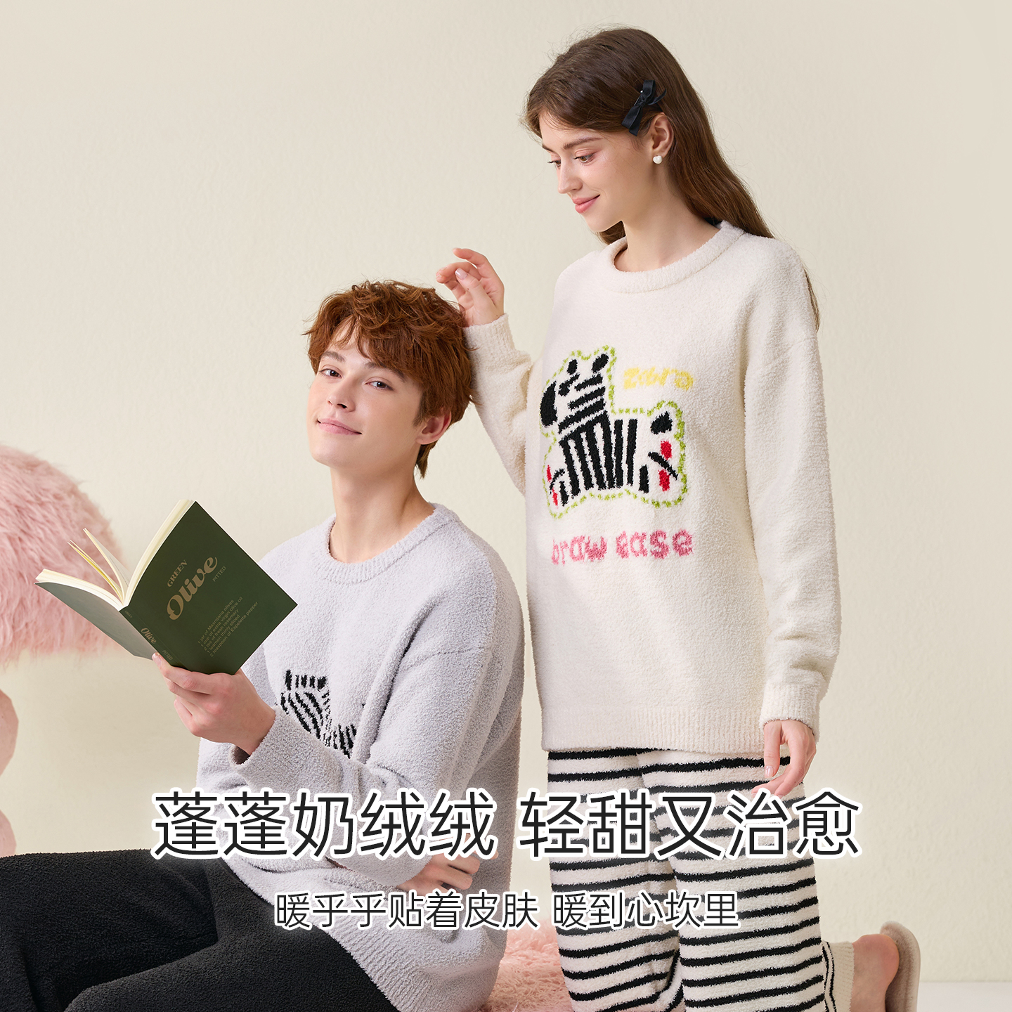 可外穿加绒加厚秋冬 男士 BE半边绒睡衣女冬季 情侣珊瑚绒家居服套装