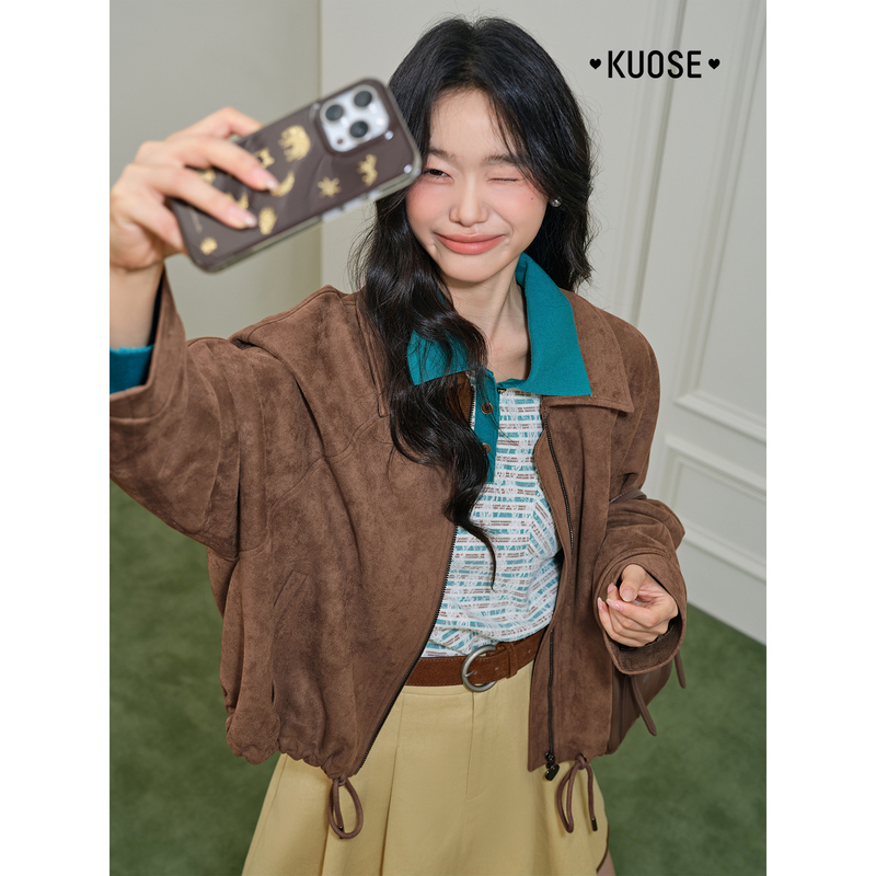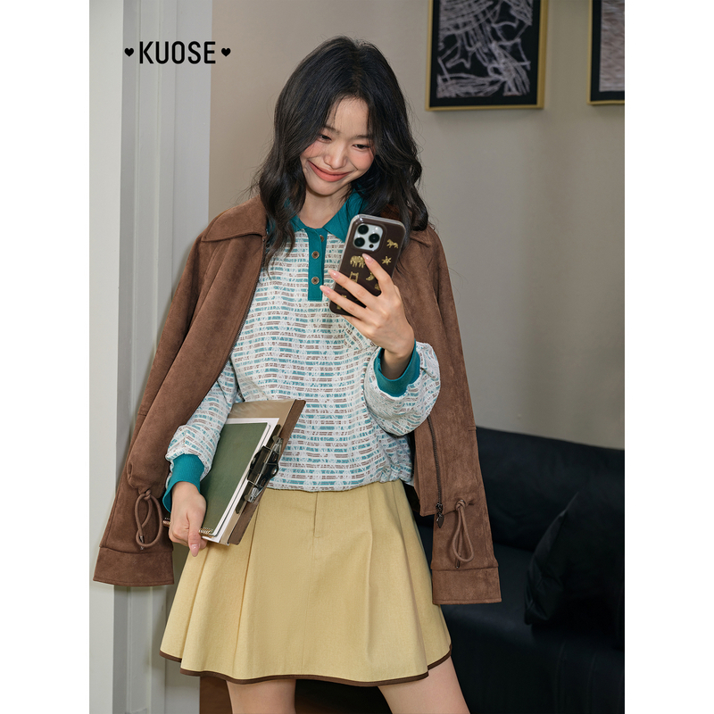 宽松休闲打底卫衣 新款 阔色条纹polo领无帽套头上衣女装 2025秋冬季