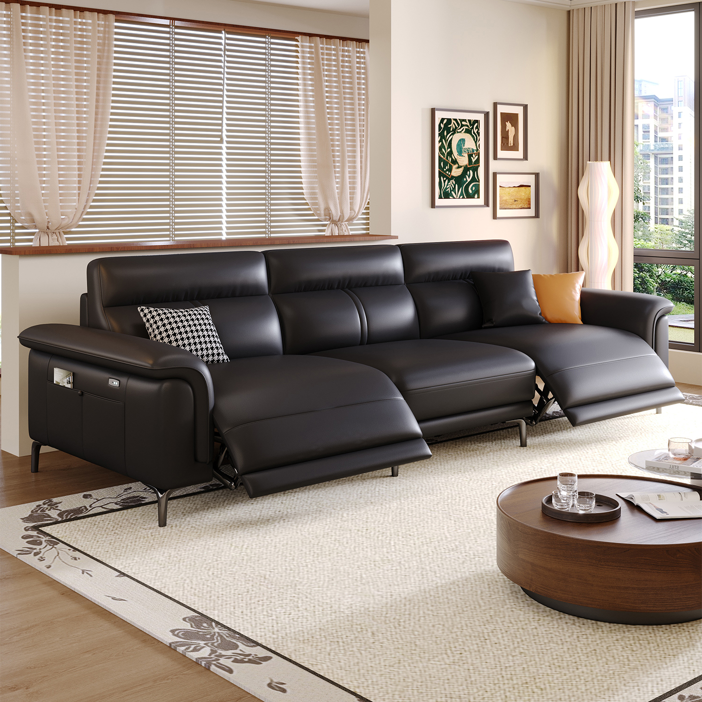 家美康朝现代简约电动功能真皮沙发零靠墙头层牛皮沙发可靠可躺