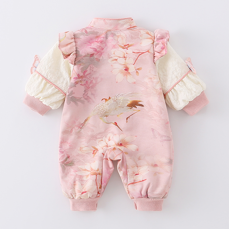 礼服女宝宝洋气连体衣双层满月宴外套 新中式 Kmi新款 婴儿衣服春季