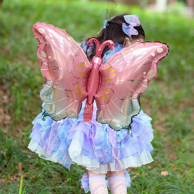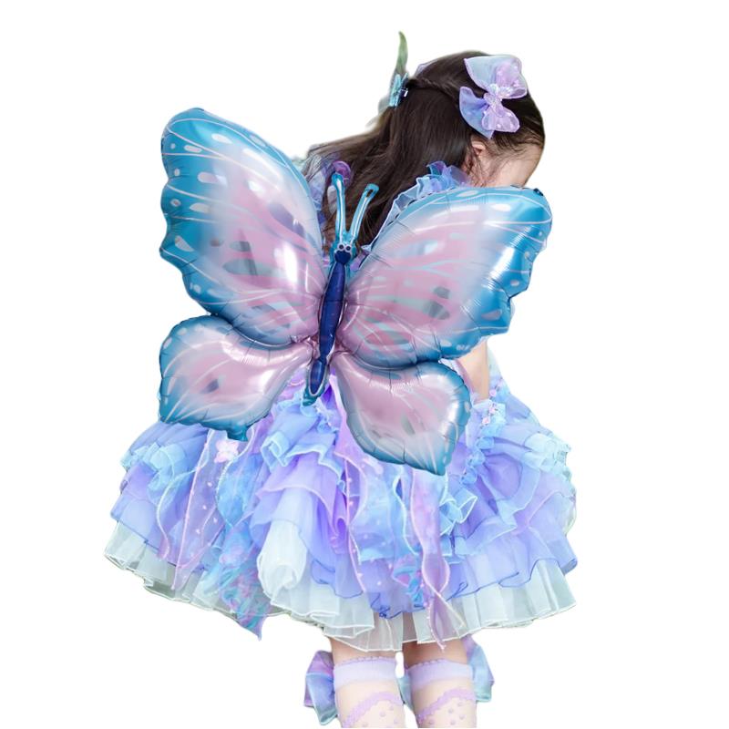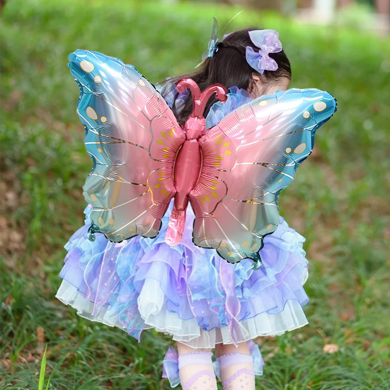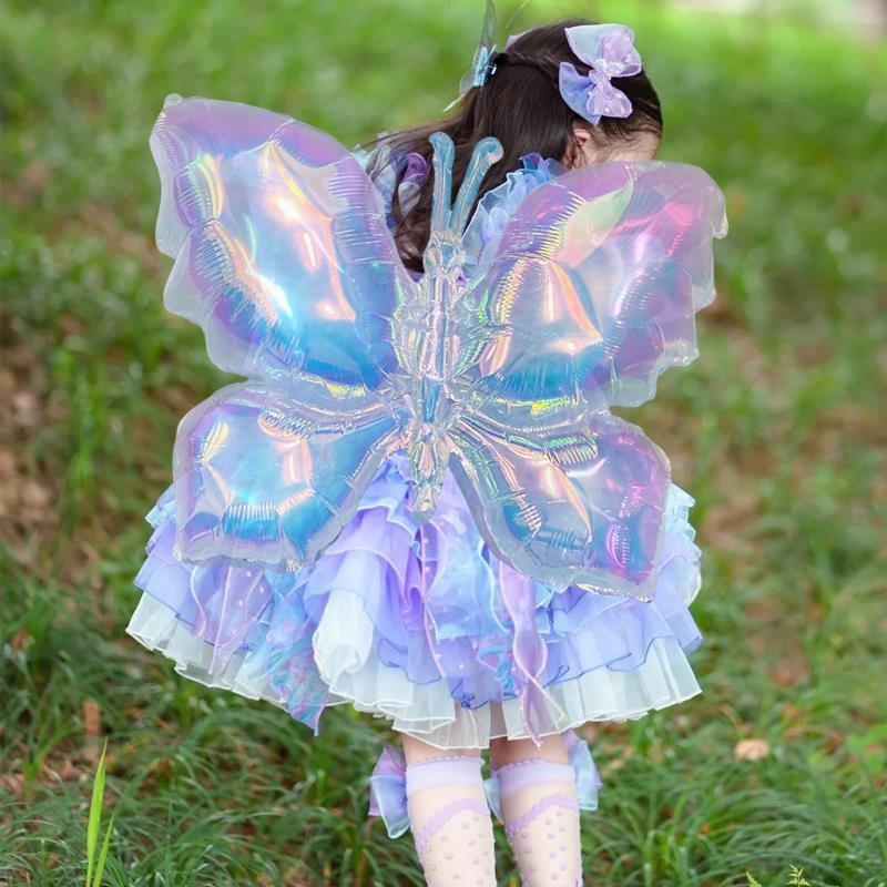 儿童气球蝴蝶翅膀背饰户外秋游拍照装 饰超大铝膜 饰道具镭射炫彩装