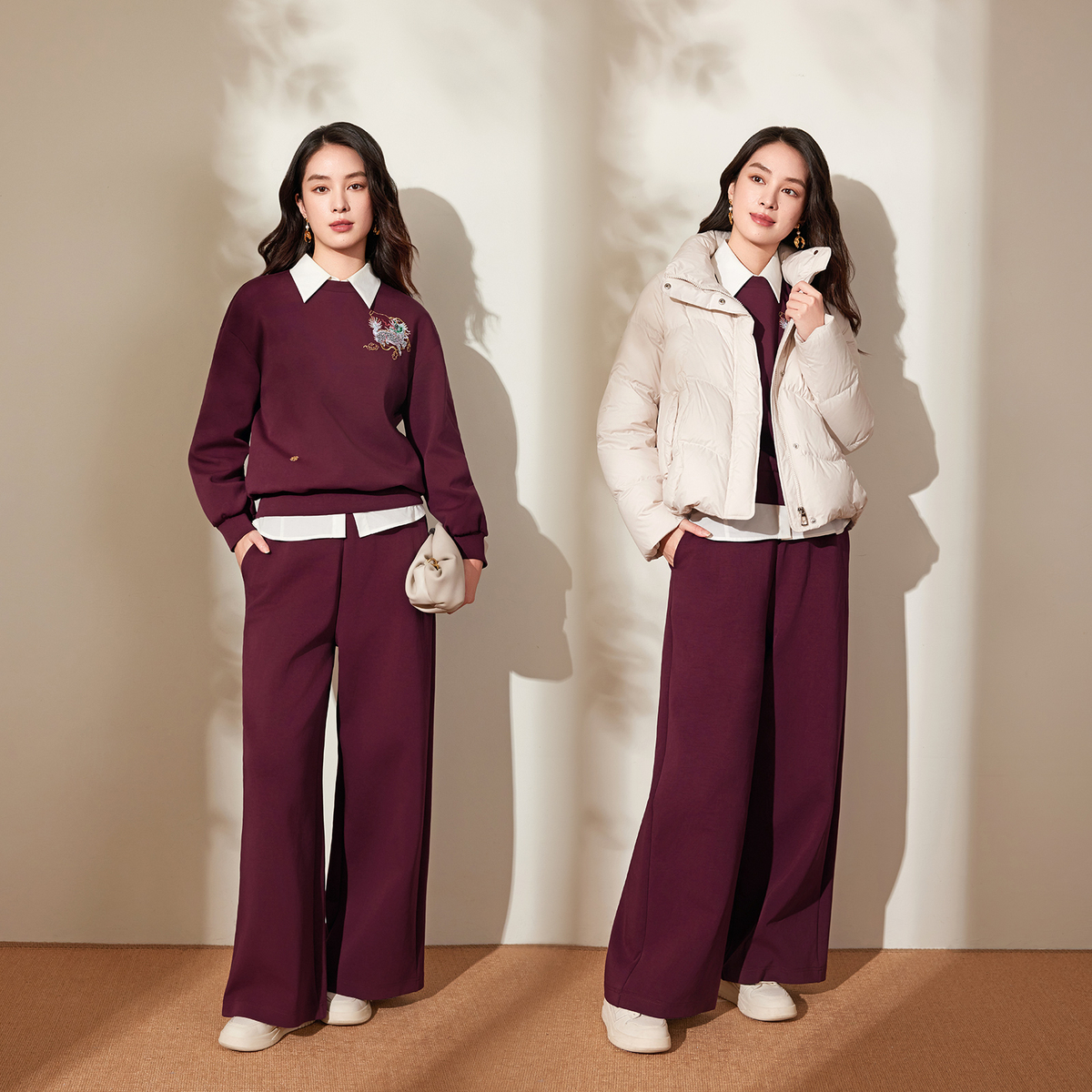 休闲感简约运动套装 BBLLUUEE粉蓝衣橱2025秋冬新款 女 麒麟踏云