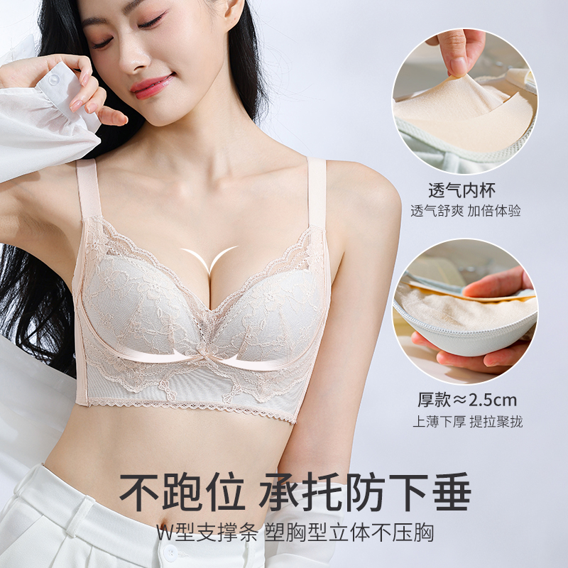 素肌良品果冻条无痕粉底液内衣女小胸聚拢防下垂夏薄款 收副乳文胸