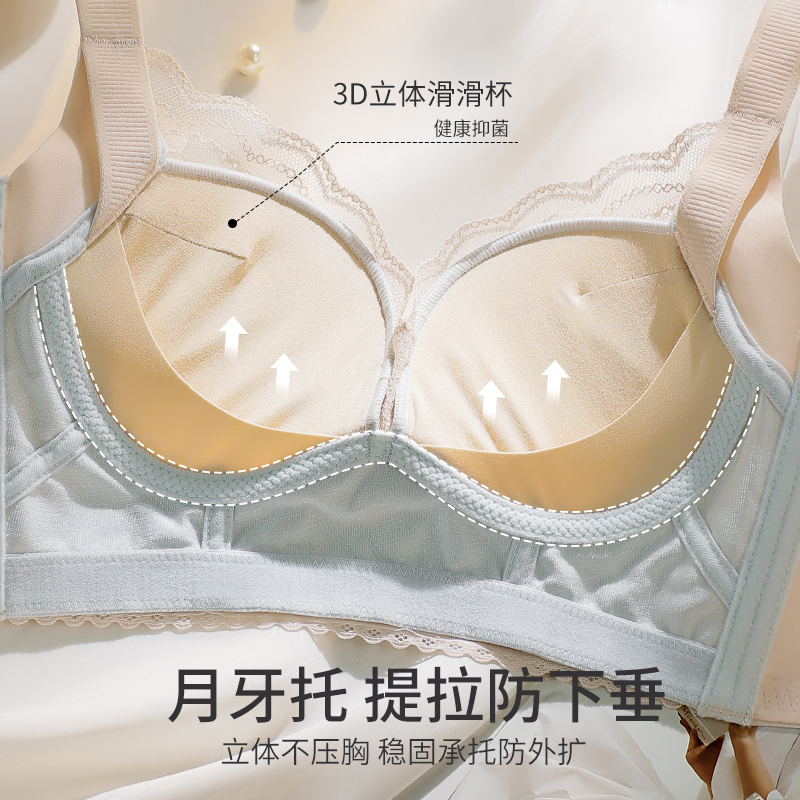 新光面上托侧推全罩杯大胸显小文胸 遐无痕内衣女薄款 小青提