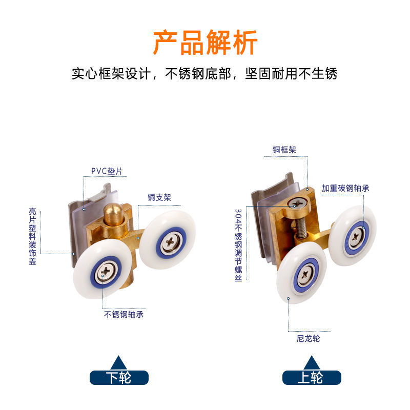 圆弧形淋浴房滑轮浴室玻璃推拉移门老式 滚轮配件轨道吊轮上下轮子