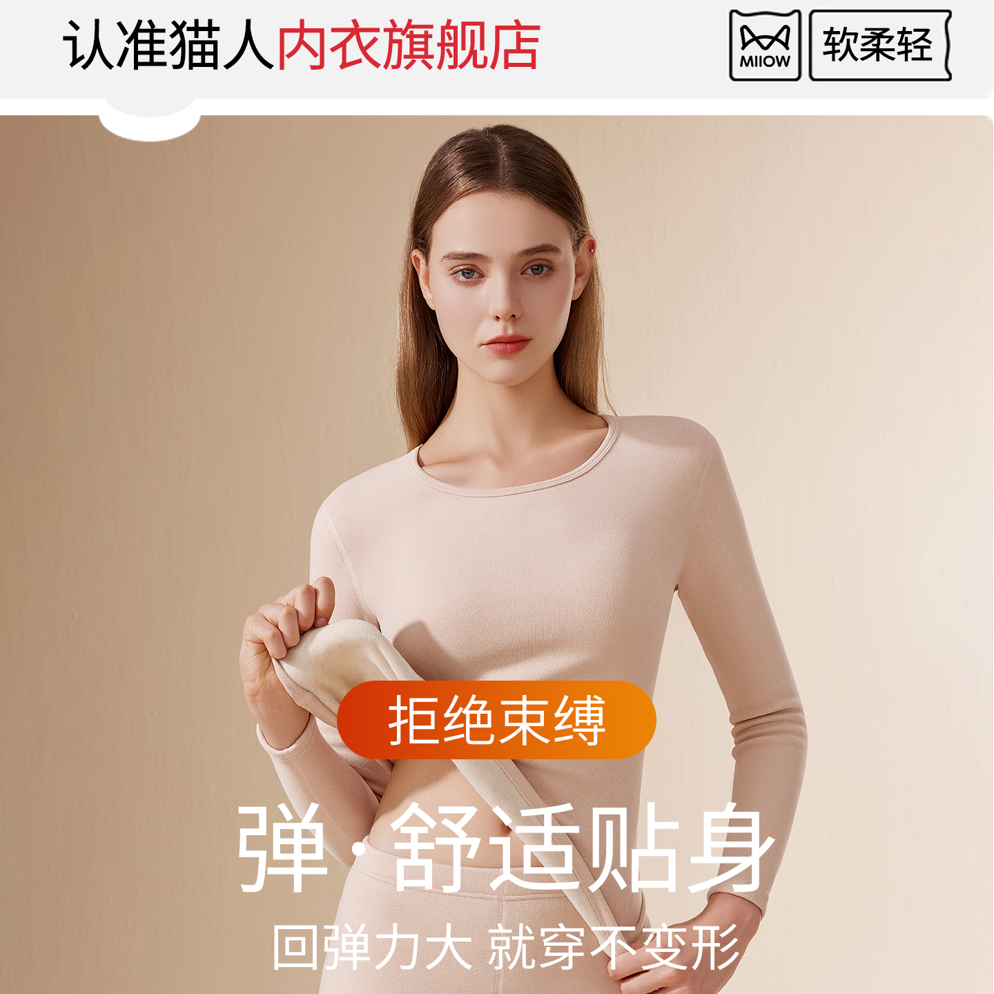 女 内衣羊毛秋衣秋裤 肖战同款 小黑猫猫人倍暖5.0科技打底保暖套装