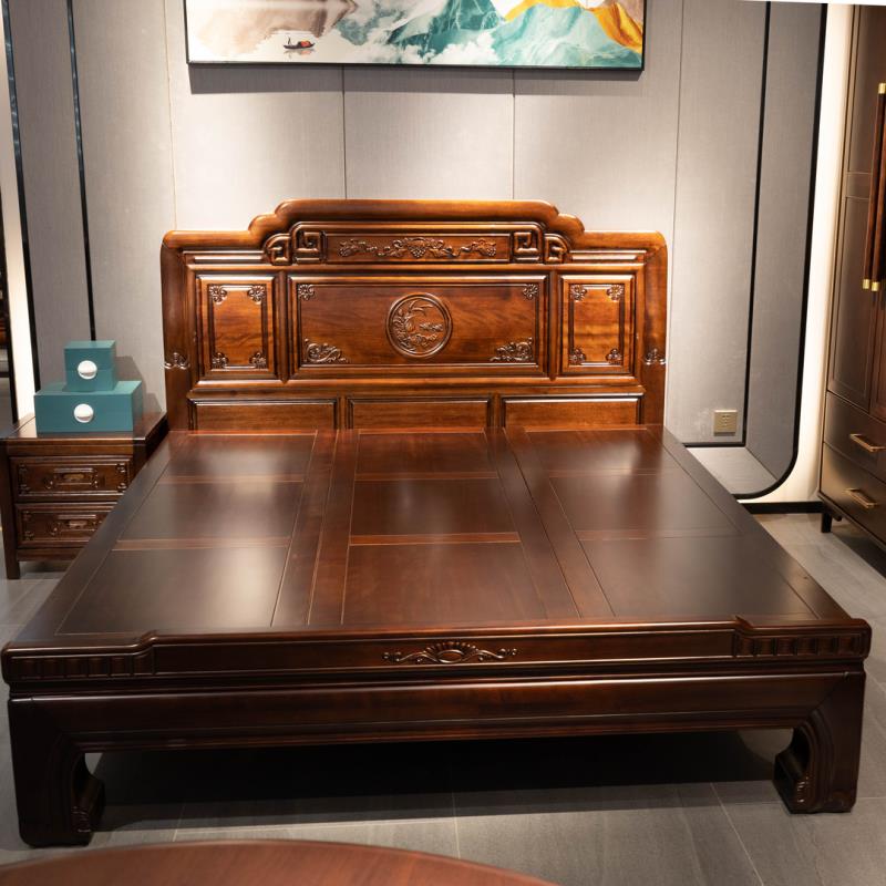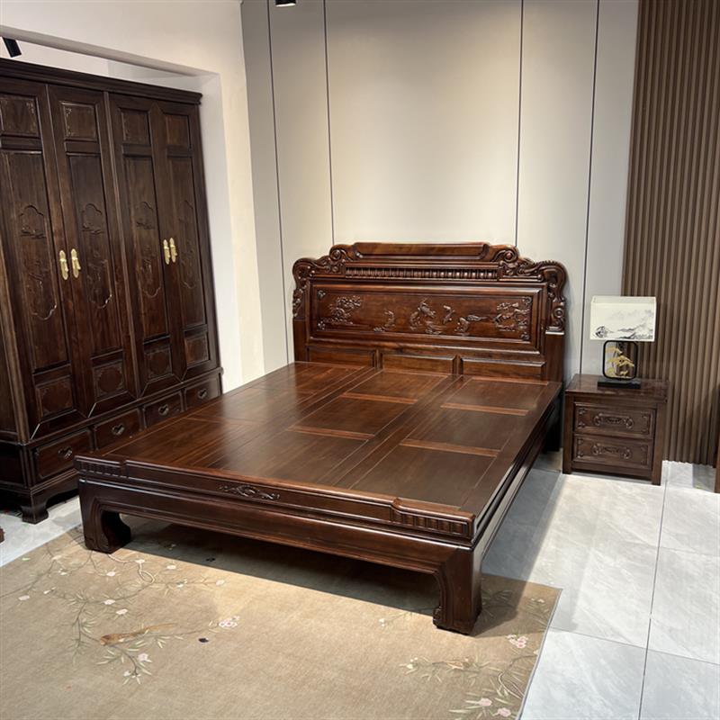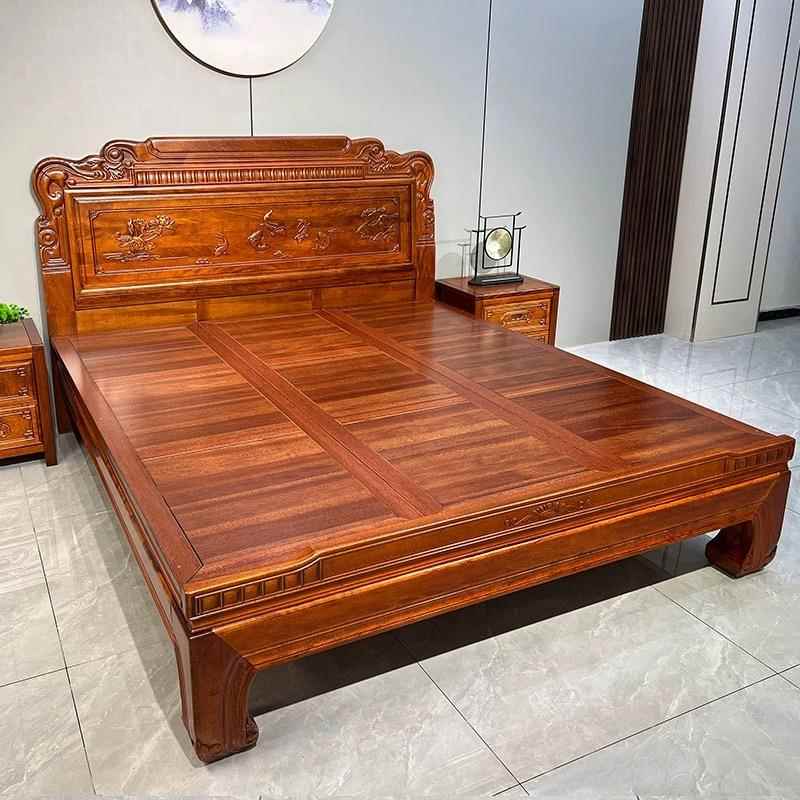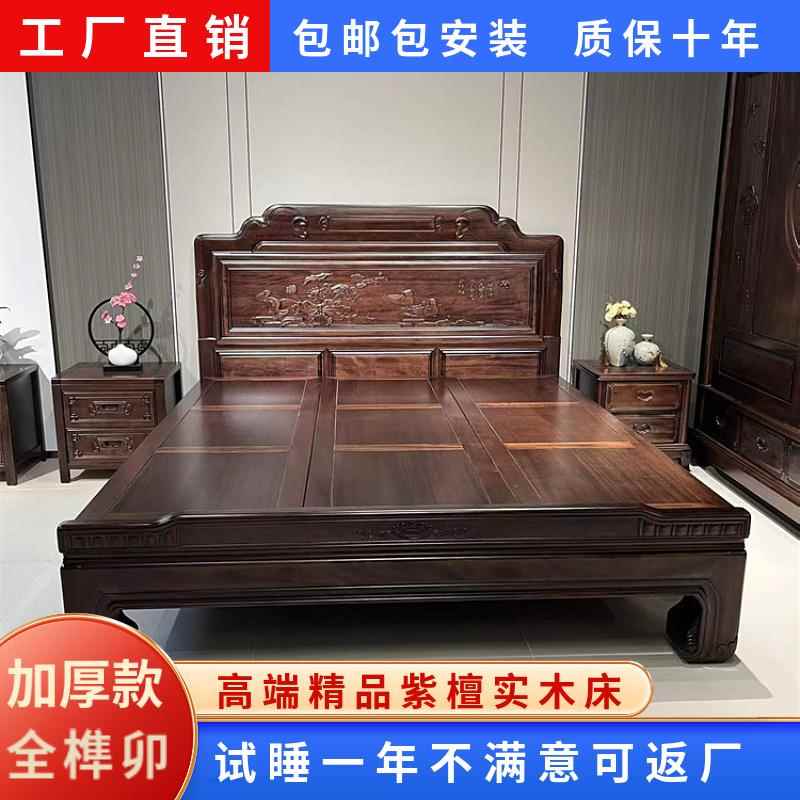 全榫卯紫檀木花梨木实木床仿古1.8双人家用主卧大床明清古典雕花