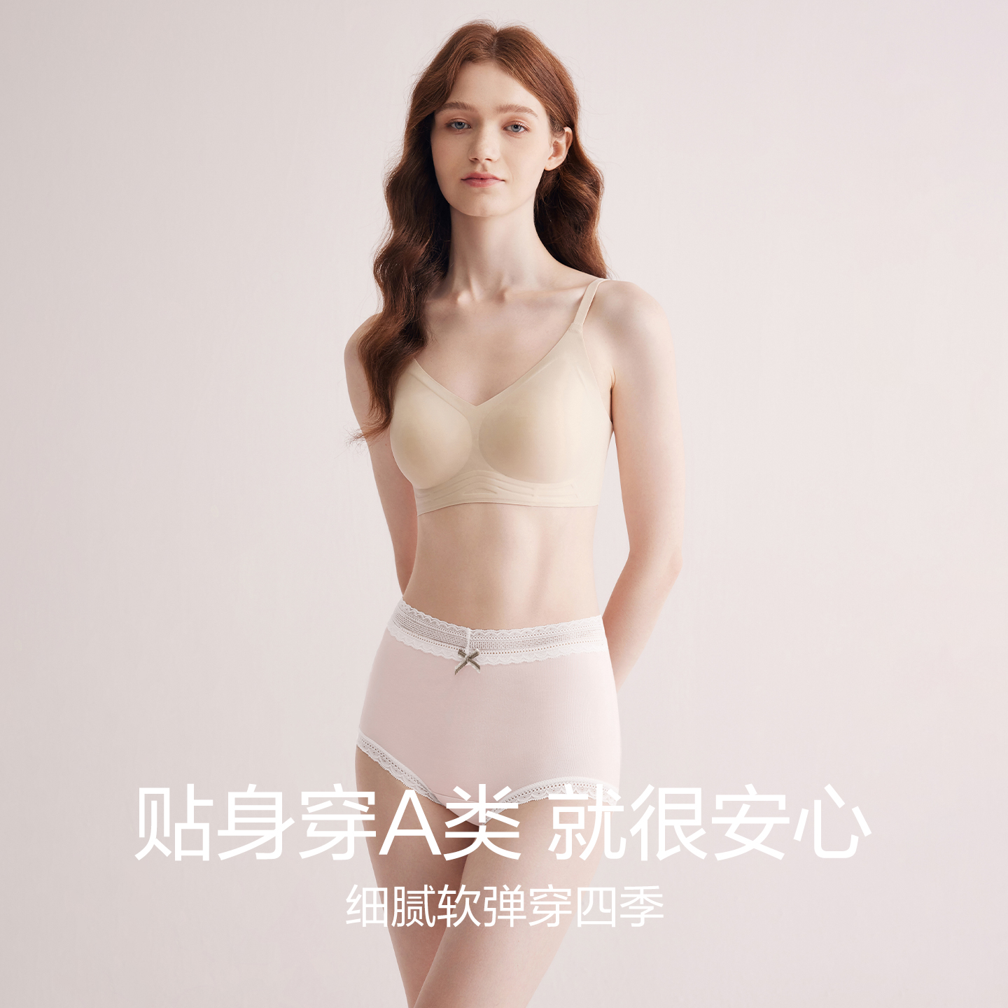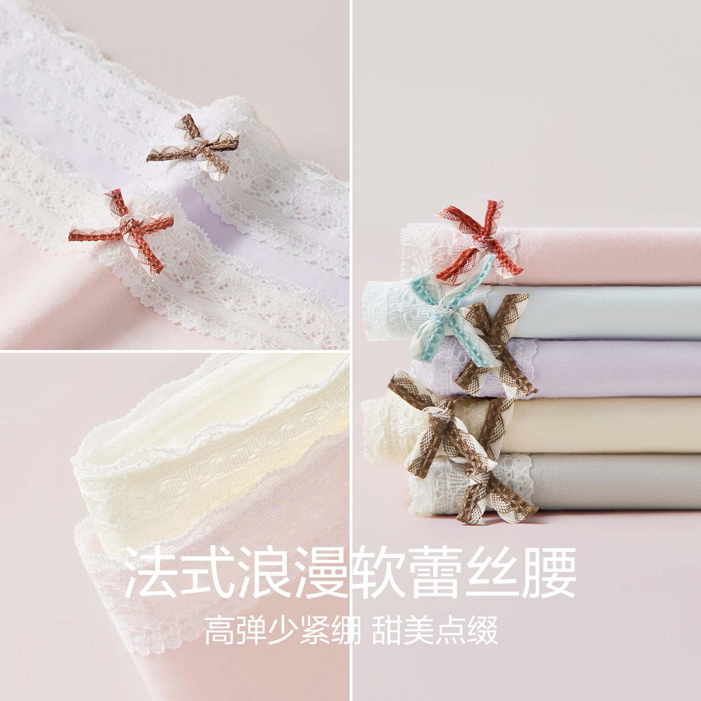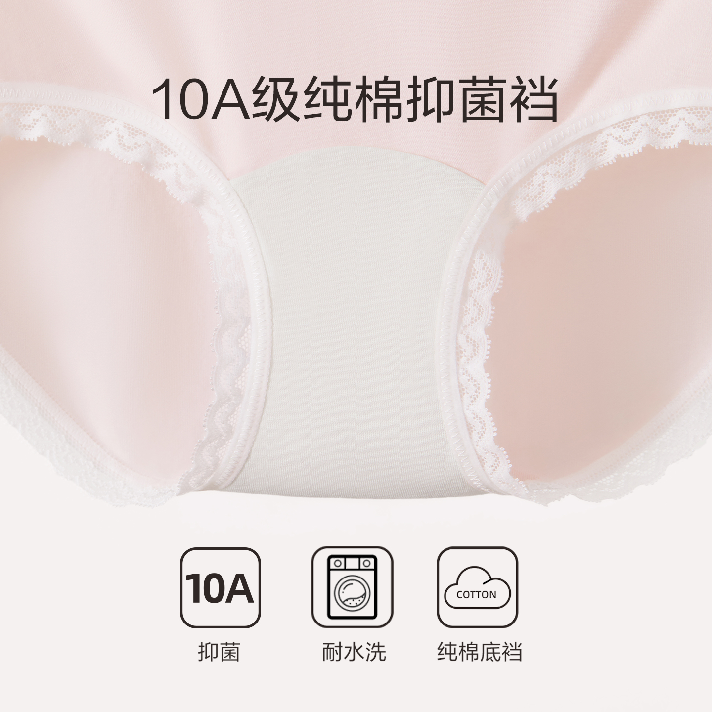 红豆内裤 女生纯棉10A抗菌裆加长中腰莫代尔棉高腰收腹蕾丝三角裤