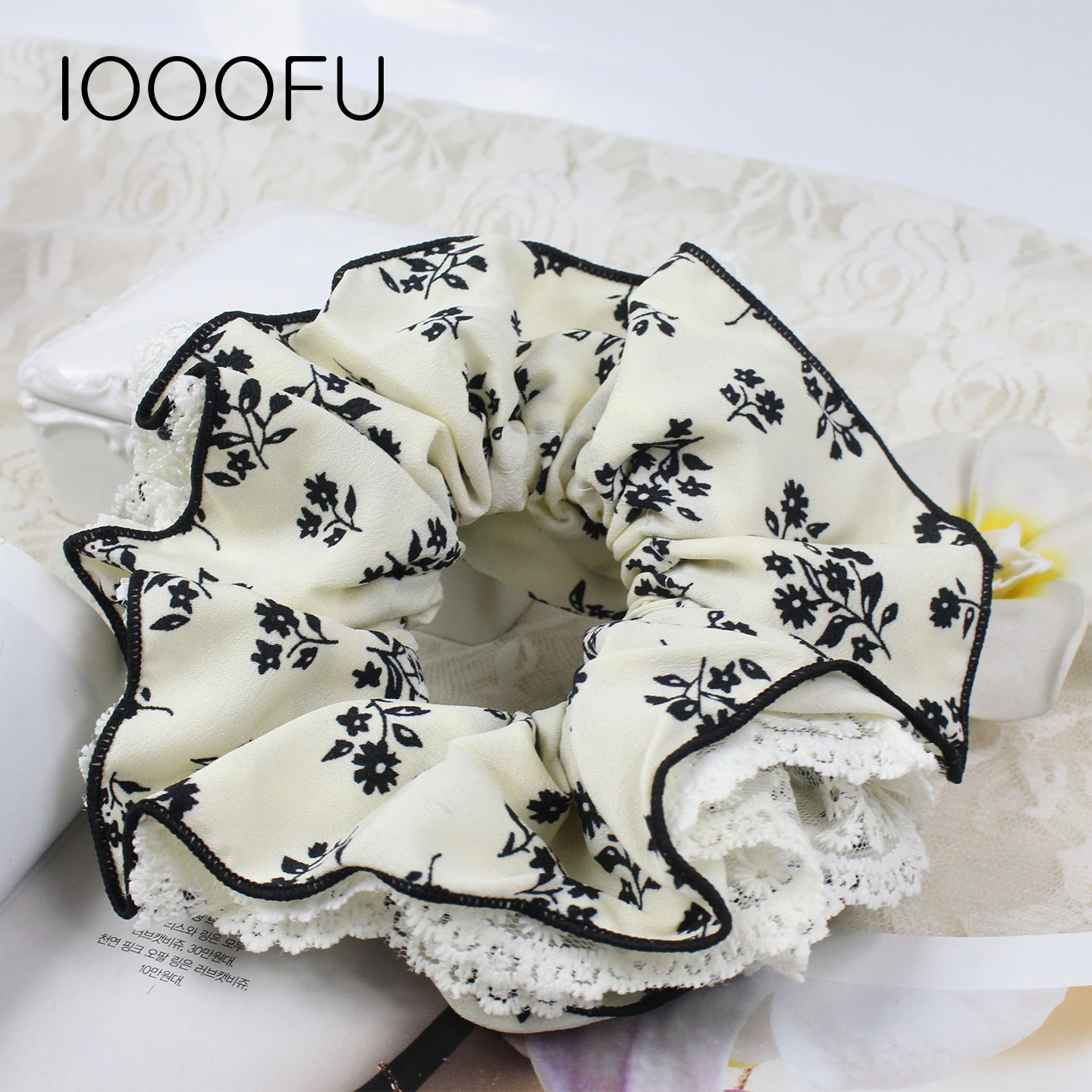 法式 森女布艺复古碎花蕾丝花边白色大肠发圈气质发绳温柔风大头花