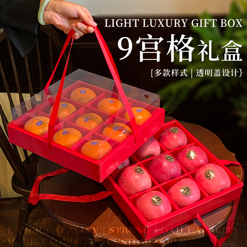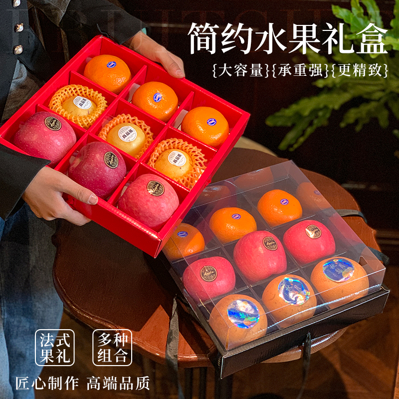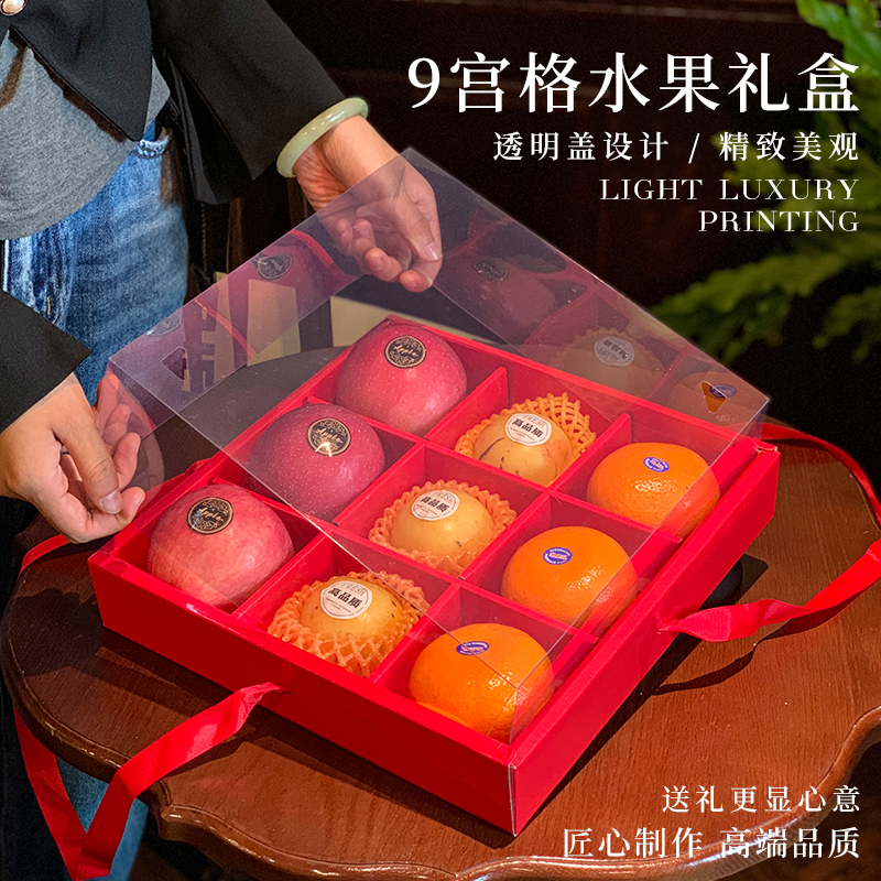 高档透明盖中秋节水果礼盒空盒子法式 盒 礼品盒9宫格混搭水果包装