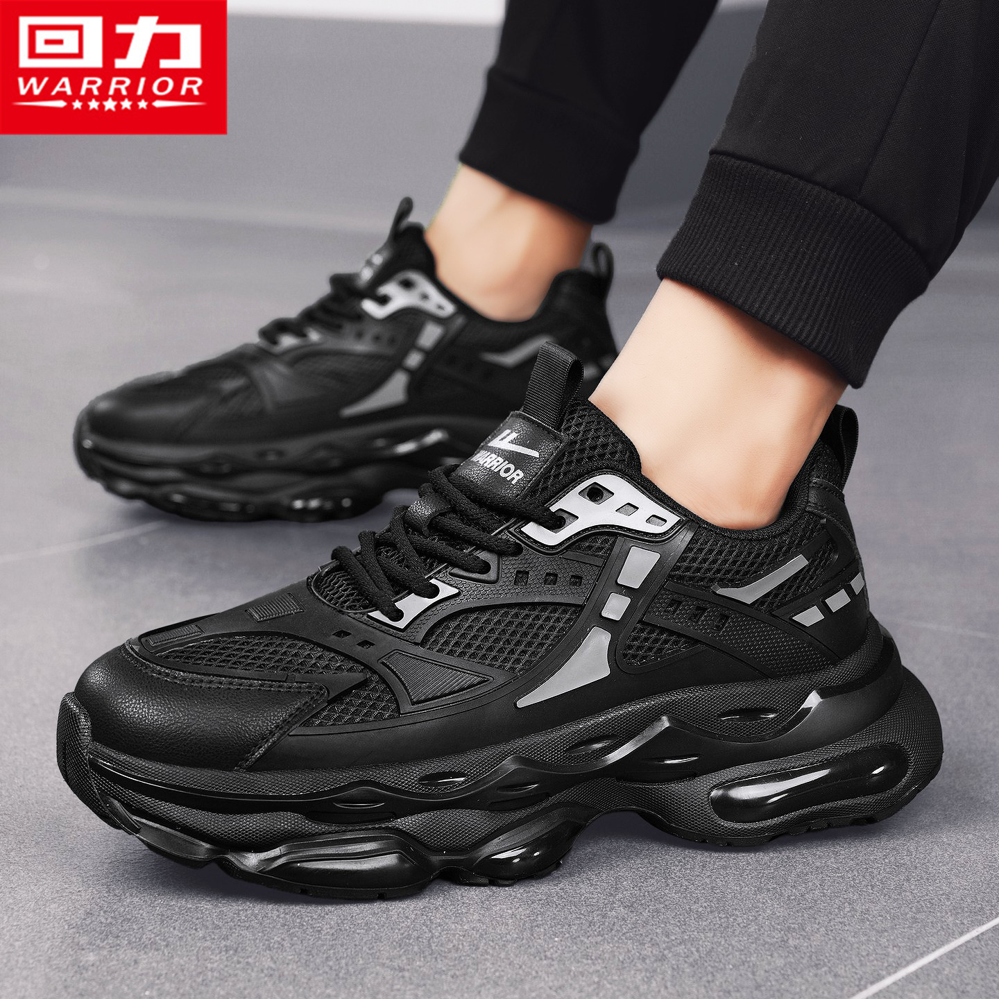 黑色老爹潮鞋 潮牌运动气垫跑步青少年增高爆款 秋季 回力黑武士男鞋