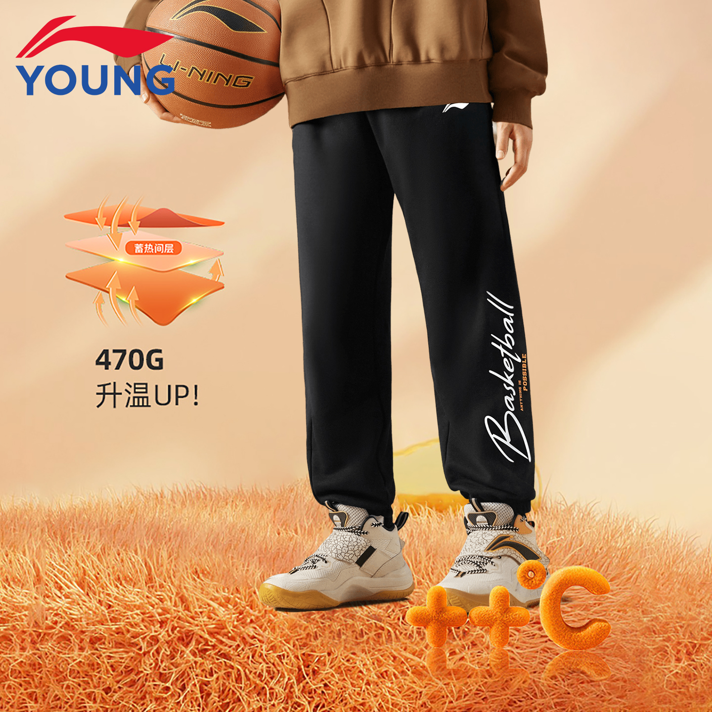 女士宽松休闲裤 女秋季 李宁卫裤 子女针织毛圈运动长裤 双11预售