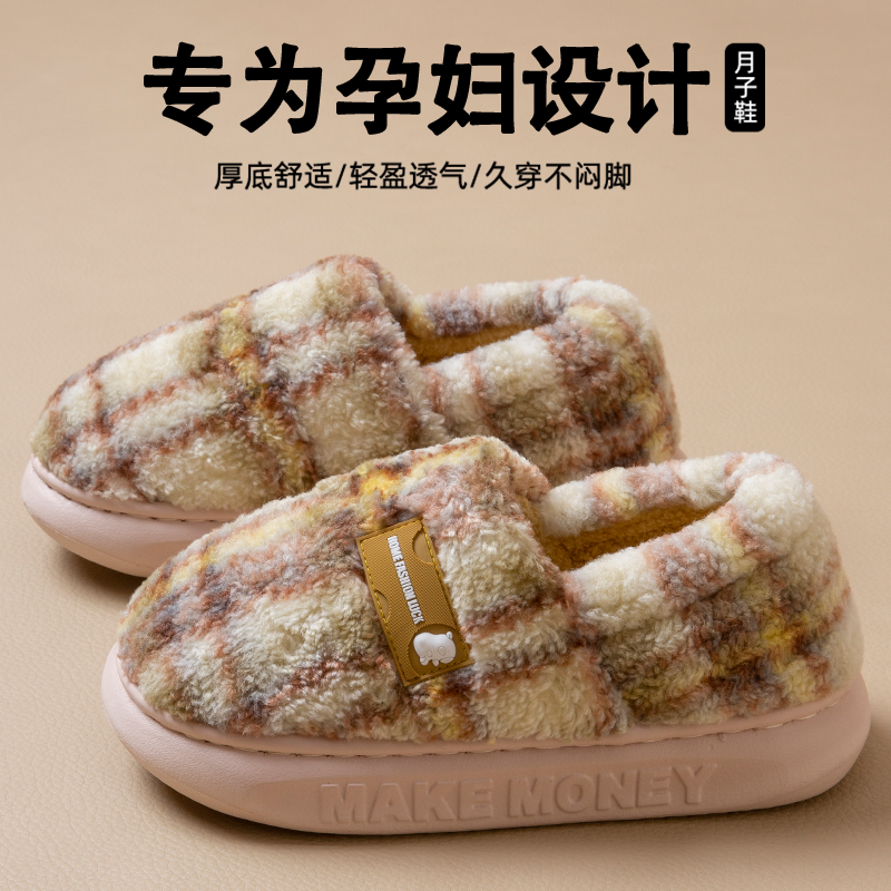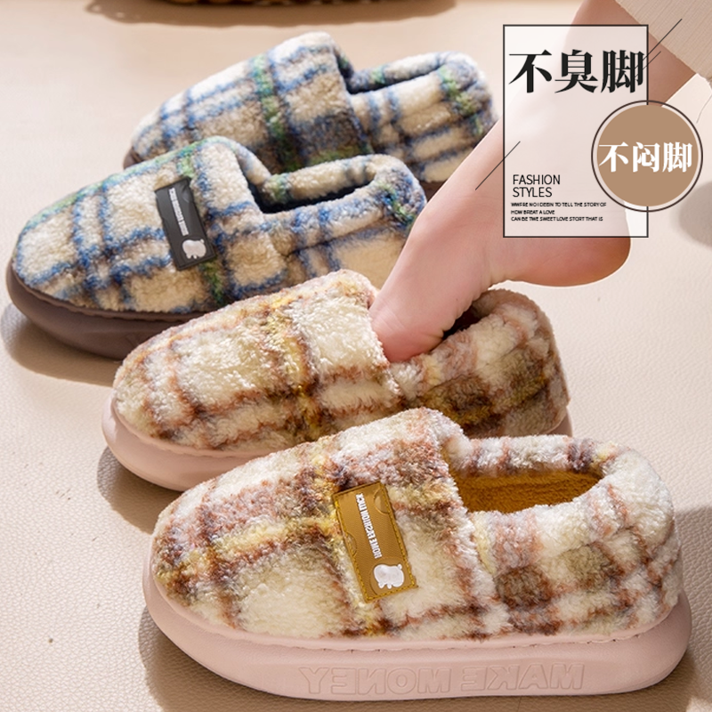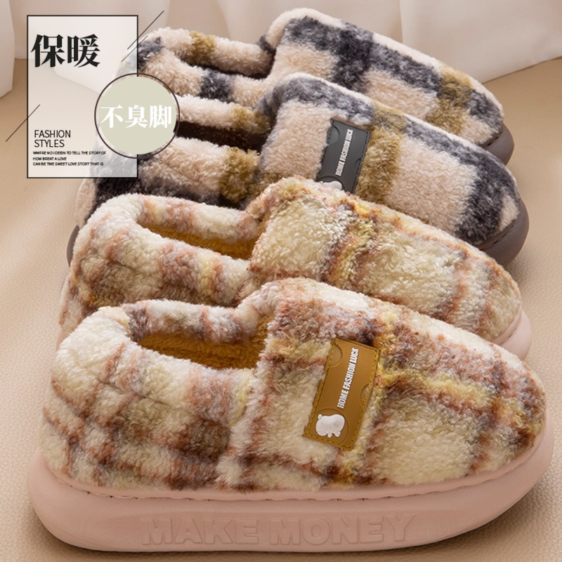 家居室内防滑厚底保暖毛绒棉鞋 包跟棉拖鞋 2025新款 秋冬季 女士 女款