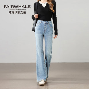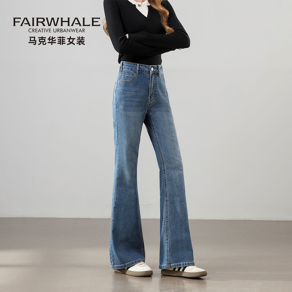 高腰显高显瘦弹力马蹄裤 女2025新款 子 微喇牛仔裤 马克华菲黑色修身