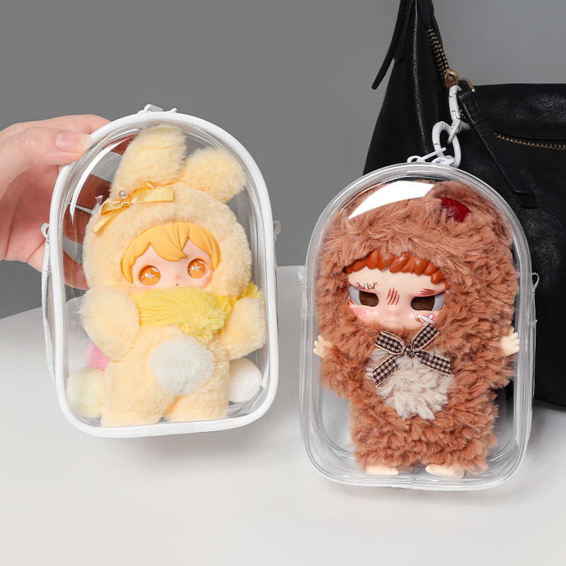 labubu透明保护套拉布布搪胶坐坐派对痛包挂件娃娃手办公仔防尘罩