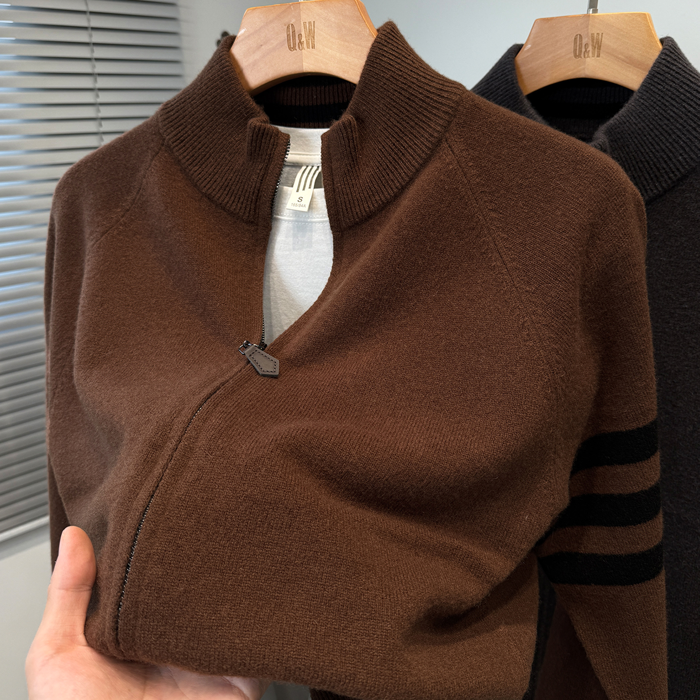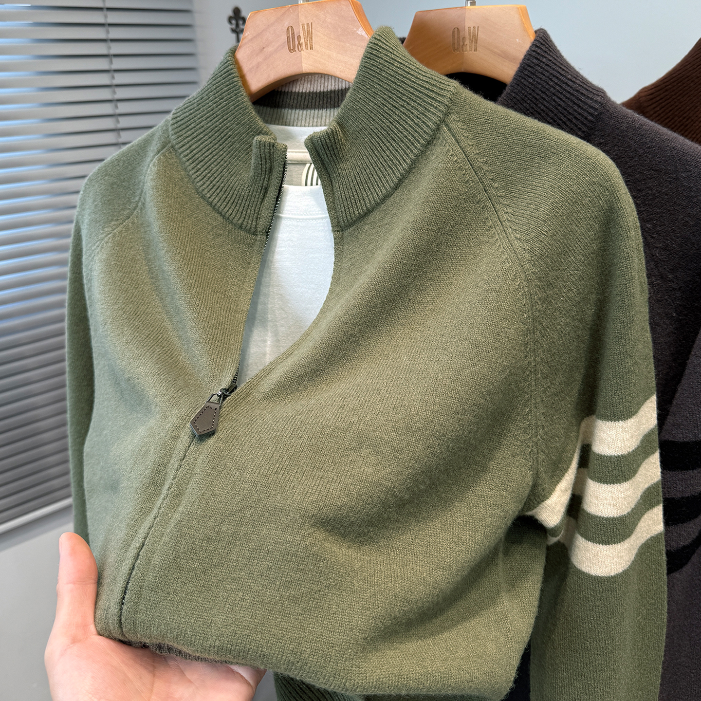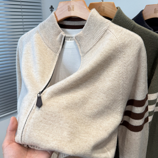 品牌tb毛衣外套男半高领中年休闲外搭潮 秋冬季 100绵羊毛开衫 男款