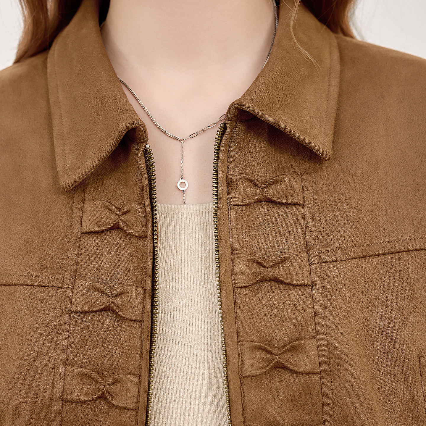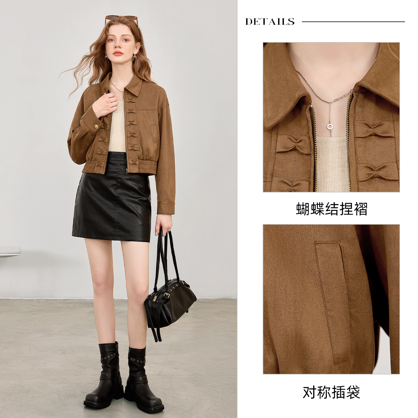 美拉德风设计感捏褶蝴蝶结上衣 女装 她池翻领短外套2025秋装 新款