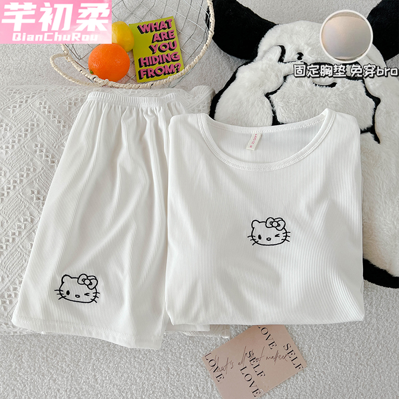 tbh野兽派家居Hello 秋冬可外穿睡衣女 Kitty全棉法兰绒家居服套装