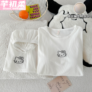 卡通可爱带胸垫家居服套装 猫人纯棉睡衣女春秋季 2025新款 长裤 长袖