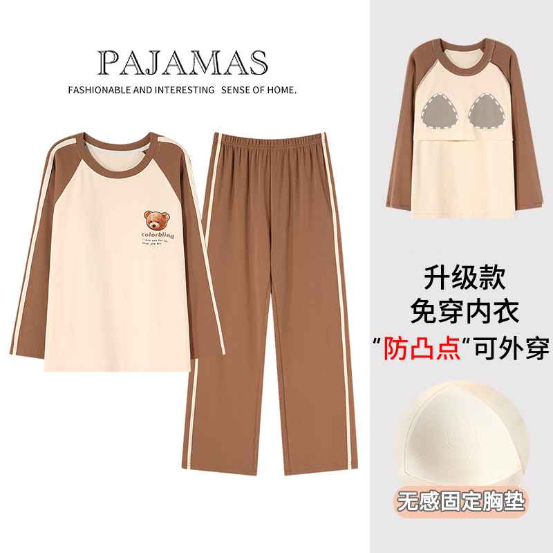 薄款 2025新款 短袖 套装 可外穿家居服 长裤 猫人纯棉带胸垫睡衣女夏季