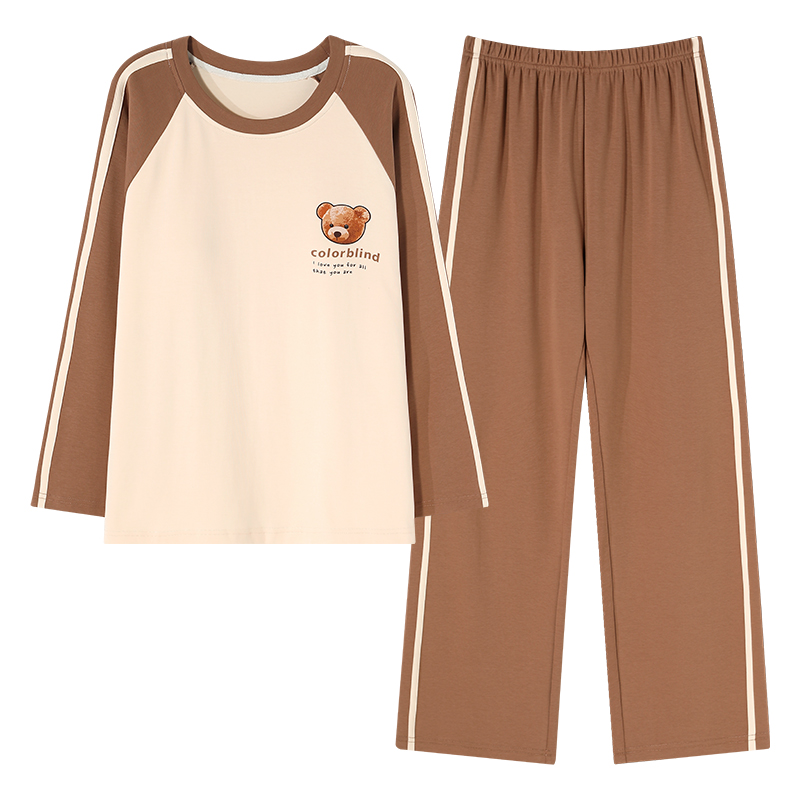 休闲家居服套装 男女同款 可出门 女长袖 安比斯情侣睡衣舒适纯棉秋季