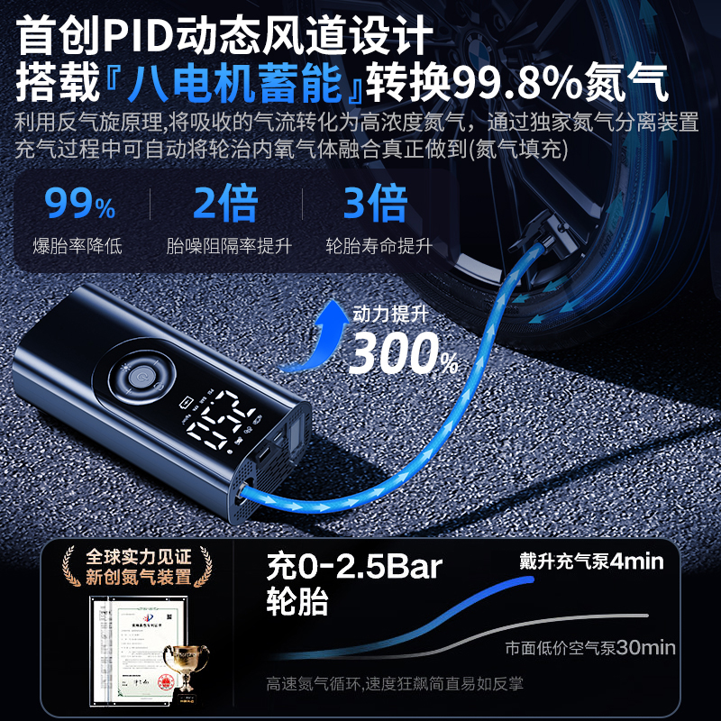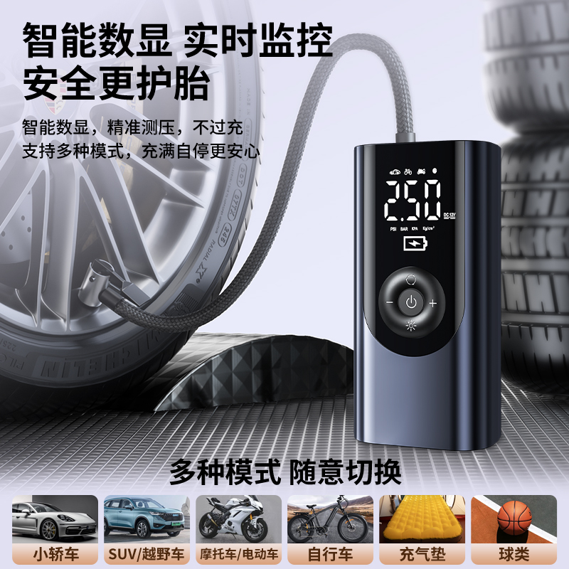 车载充气泵无线便携式 高压打气泵汽车轮胎电动打气筒车用带测胎压