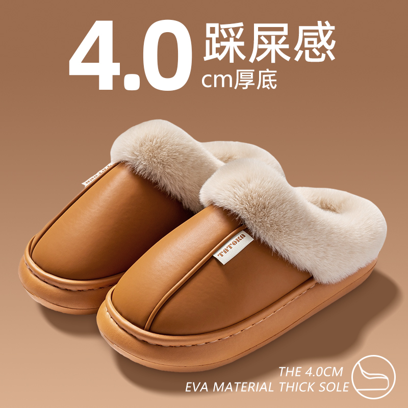室内家居外穿拖鞋 软底棉拖鞋 情侣防滑加绒保暖月子鞋 女2025款 冬季