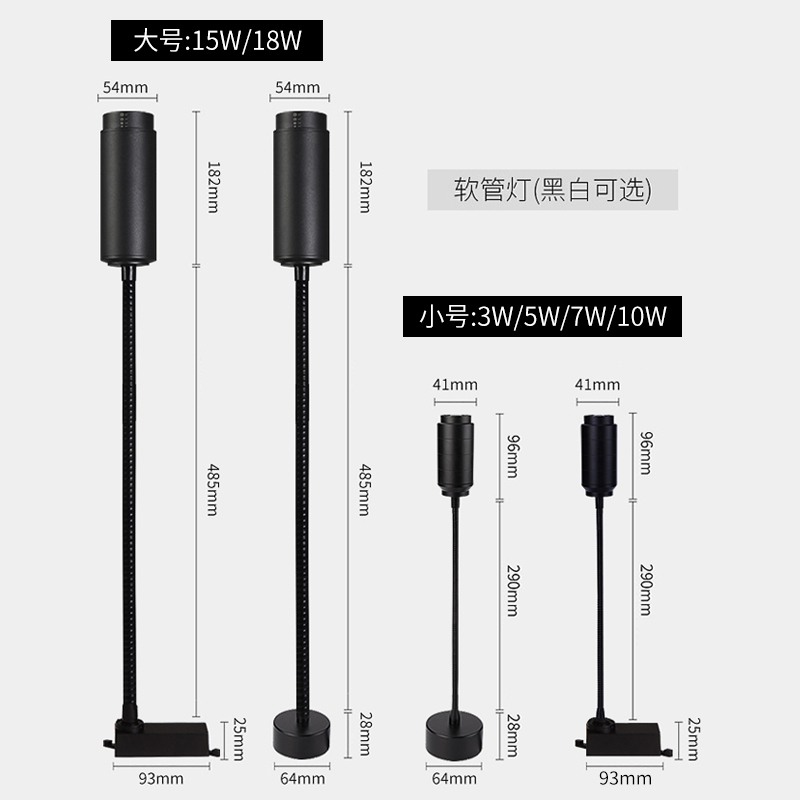 led软管小射灯明装 照画背景展示柜万向迷你COB轨道吸顶长杆可弯曲