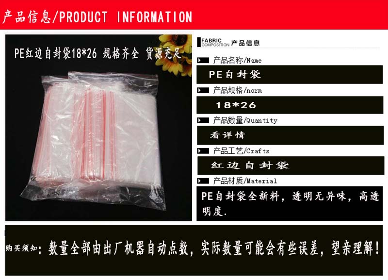 26cm 批发红边夹链自封袋 塑料袋 100只价 透明型包装
