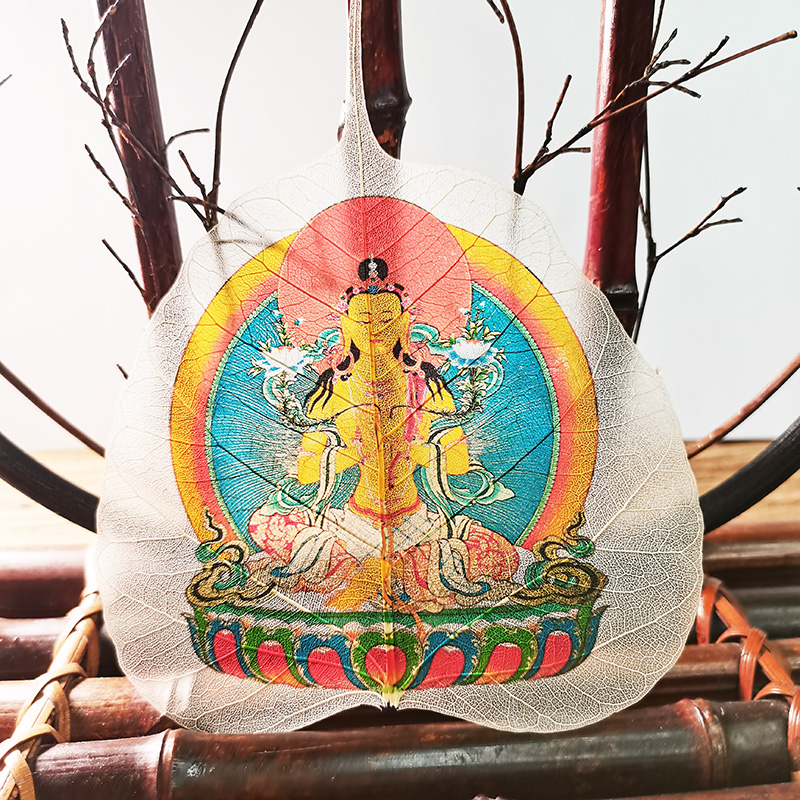 菩提树叶画藏传佛像唐卡普贤文殊菩萨黄财神白度母12生肖本命佛