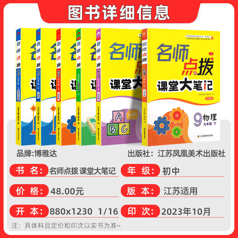 2025版 初中语文数学英语物理化学七八九年级全国人教苏教译林上教版 9年级上册下册 名师点拨课堂大笔记课课通教材全解析双色版
