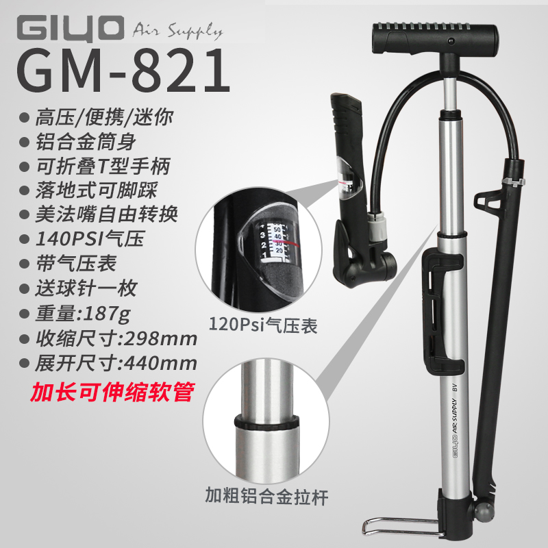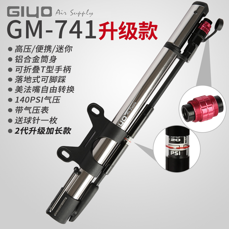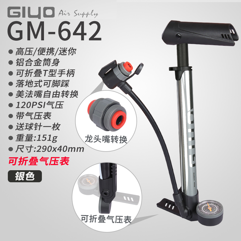 台湾GIYO山地公路自行车家用迷你高压便携式 带气压表 打气筒落地式
