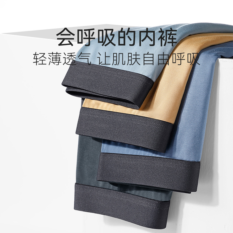 内裤 短裤 防潮湿夏季 冰丝感无痕透气抗菌四角裤 头 平角裤 莫代尔男士