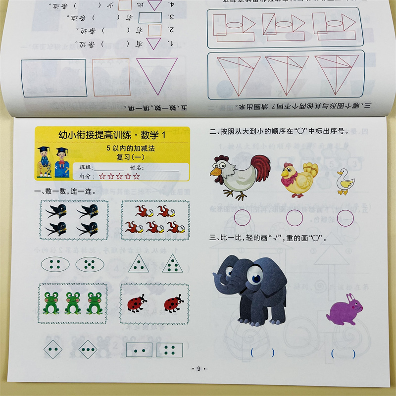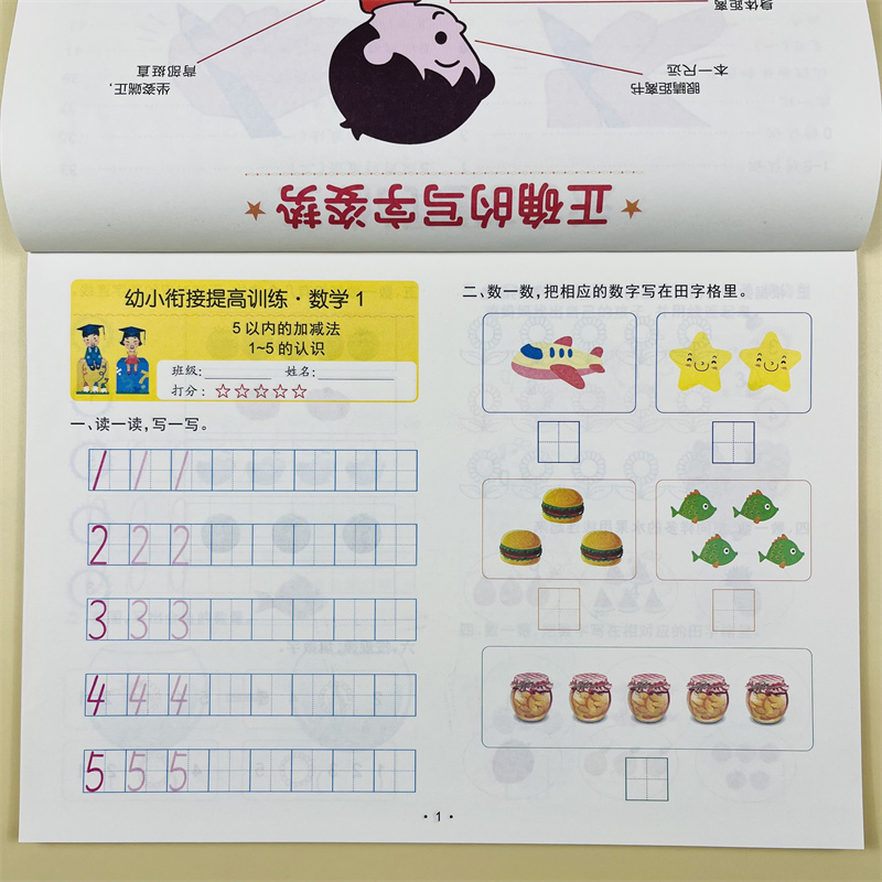 幼儿园幼小衔接5以内加减法看图写数字连线书幼儿园小班中班看图列式 6岁学前五以内分解组成比较大小数学练习 计算数学启蒙算术本3