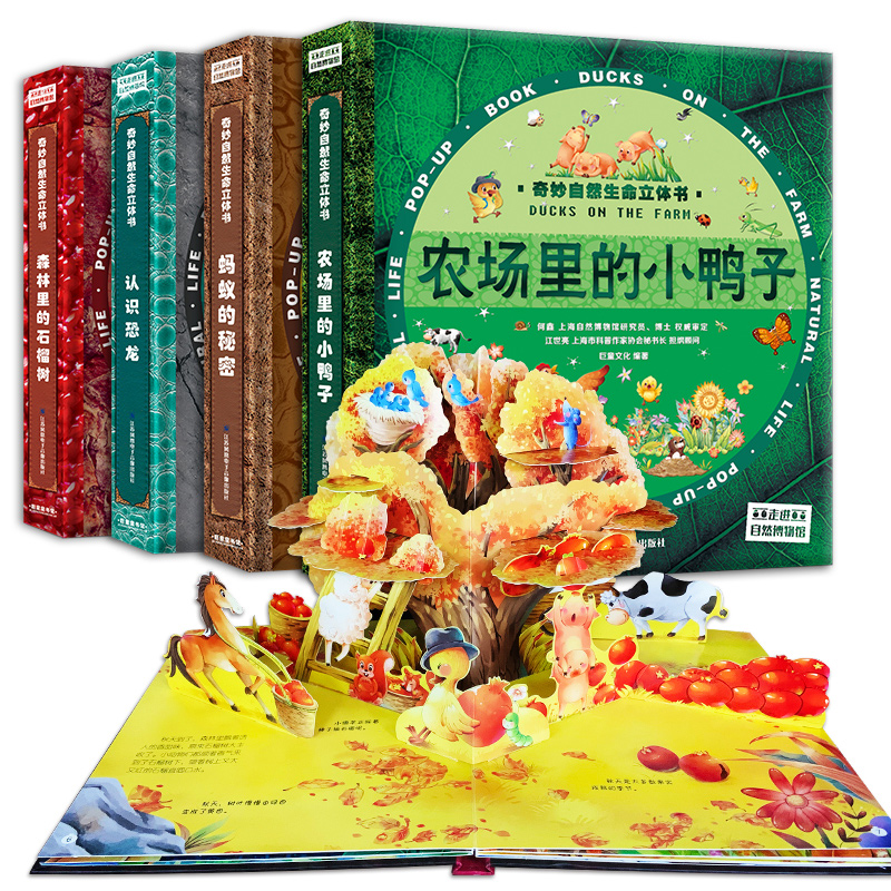 6岁幼儿早教启蒙游戏书籍扫码 石榴树儿童3d立体翻翻书机关书撕不烂2 听音频 4大科普主题故事森林里 奇妙自然生命立体书全4册精装
