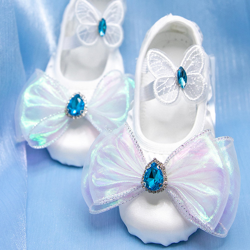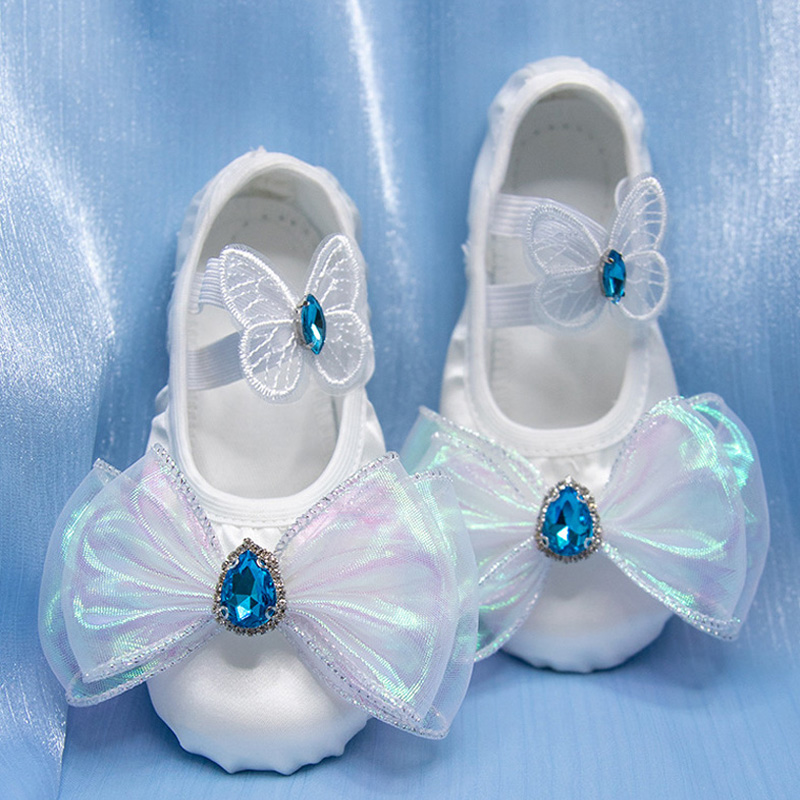 白色气质优雅女芭蕾舞幼儿园演出跳舞鞋 儿童舞蹈鞋 软底练功猫爪鞋