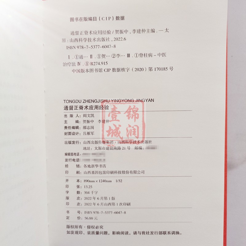 社 山西科学技术出版 通督正脊术应用经验 贺振中主编
