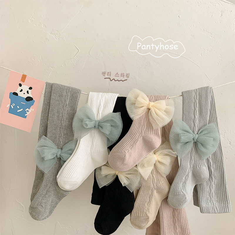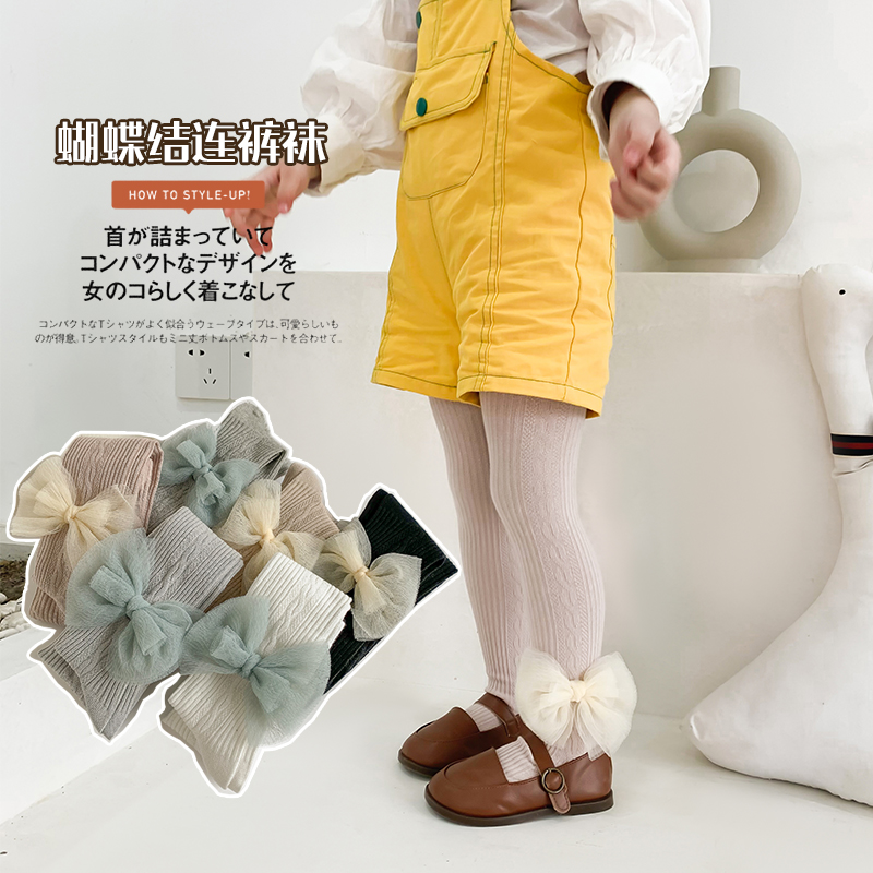 蝴蝶结儿童全棉打底裤 女宝宝纯棉打底袜韩版 子 袜春秋薄款 婴儿连裤