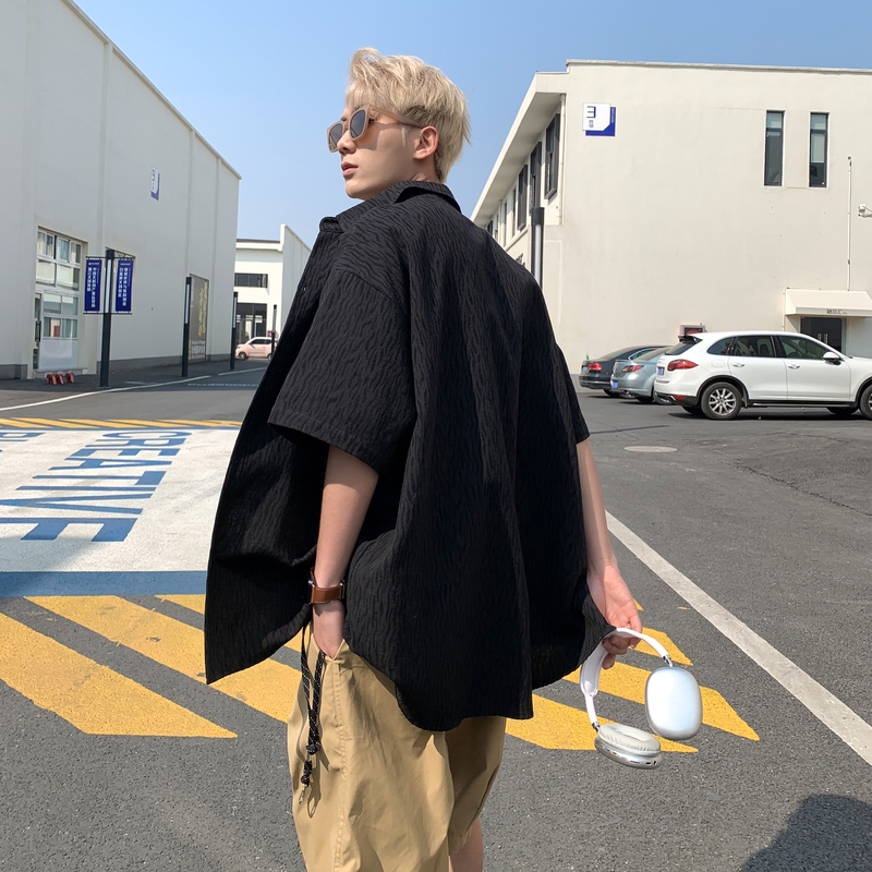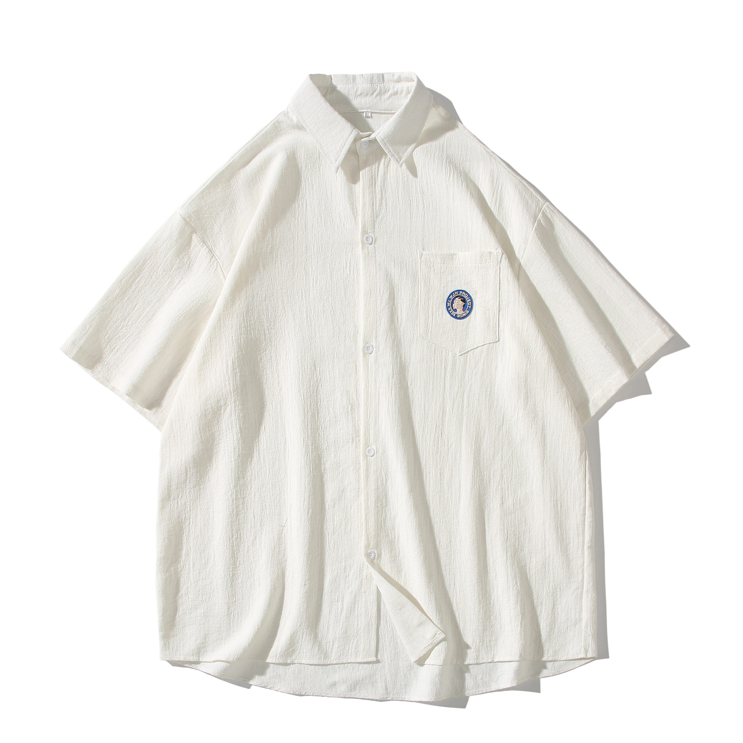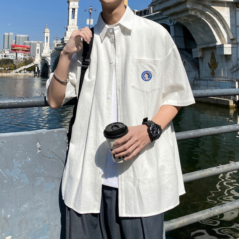 夏季 衬衫 薄款 日系宽松半袖 衬衣外套潮牌 学院风男士 情侣装 蓝色短袖