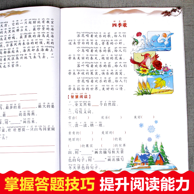 二年级上册语文辅导专项训练小学生阅读理解训练题语文同步人教版 课外阅读练习题强化训练每日一练作提升强化练习册