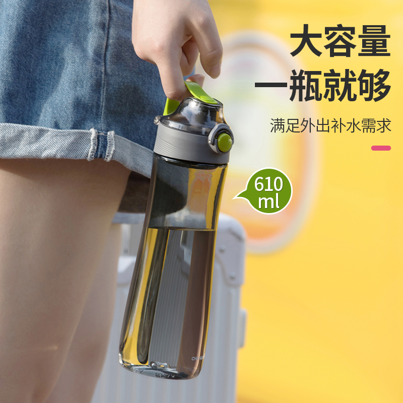 茶花塑料水杯女男生弹盖水杯运动水壶耐高温杯子户外健身随手杯
