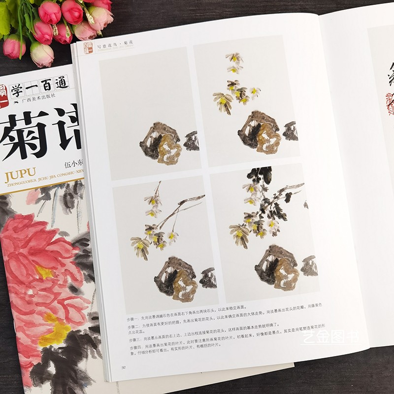 社 写意菊花画法教程伍小东编中国画基础技法丛书写意花鸟画法菊花写生创作技法白描菊花上色技法教学广西美术出版 菊谱 学一百通