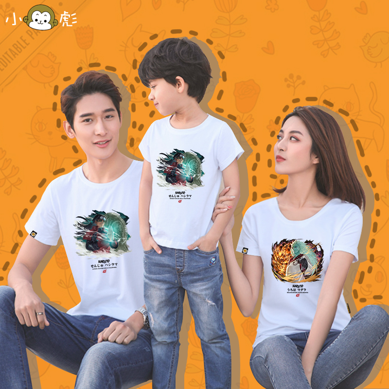 男女全家半袖 t恤衫 短袖 火影忍者晓联名写轮眼宇智波斑柱间亲子装