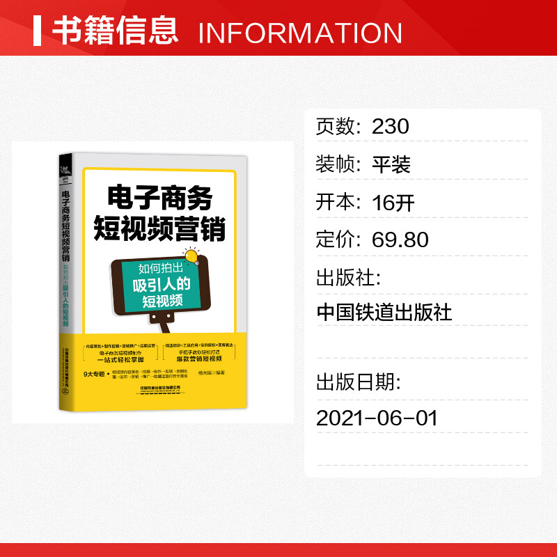 中国铁道出版 杨光瑶编著 社有限公司 正版 新华书店旗舰店文轩官网 电子商务短视频营销:如何拍出吸引人 书籍 短视频