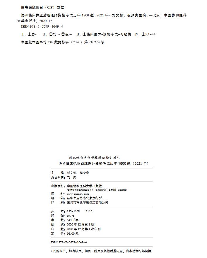协和2021年临床执业助理医师资格考试历年1800真题可搭人卫版 2021职业助理医师练习题集模拟冲刺试卷押题密卷书籍贺银成昭昭医