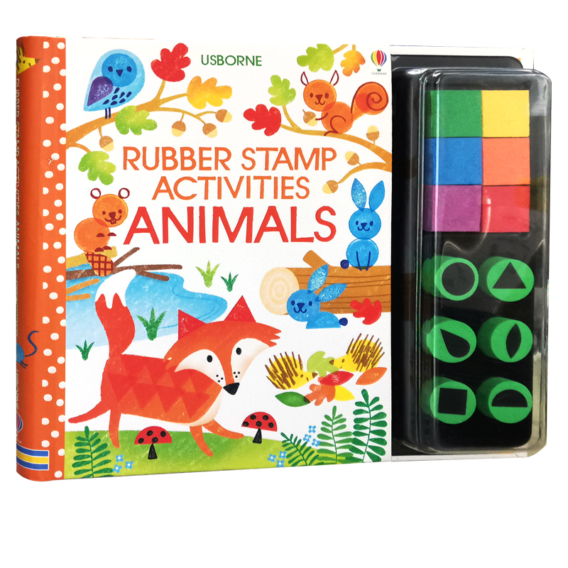 尤斯伯恩 低幼儿童艺术启蒙 Rubber 指纹绘画动物 创意指印游戏书 经典 Animals Activities Stamp 英文原版 Usborne