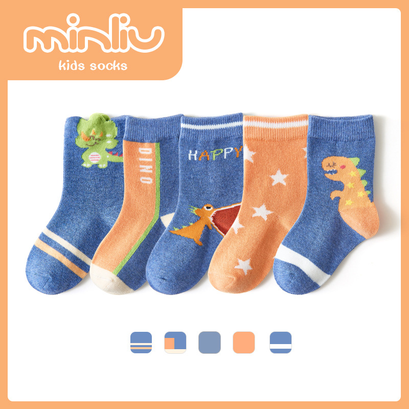 1到2至4岁男童春秋冬款 3周半小孩6宝宝7纯棉8中筒9恐龙棉袜子10
